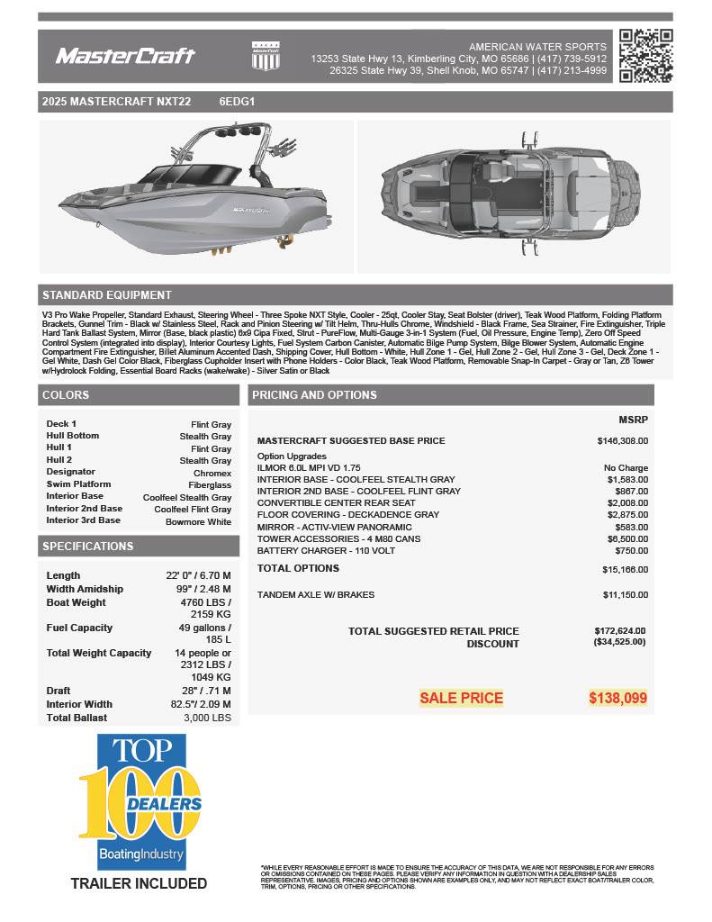 With approved credit. Terms may vary. Tax, Title, and Registration not included in prices shown and must be paid by the purchaser*. While great effort is made to ensure the accuracy of the information on this site, errors do occur so please verify information from American Water Sports.